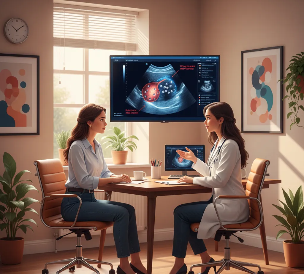 تشخيص تكيسات المبايض بيتم بدقة و وفق معايير Rotterdam Criteria المعتمدة عالميًا، وبيشمل:
